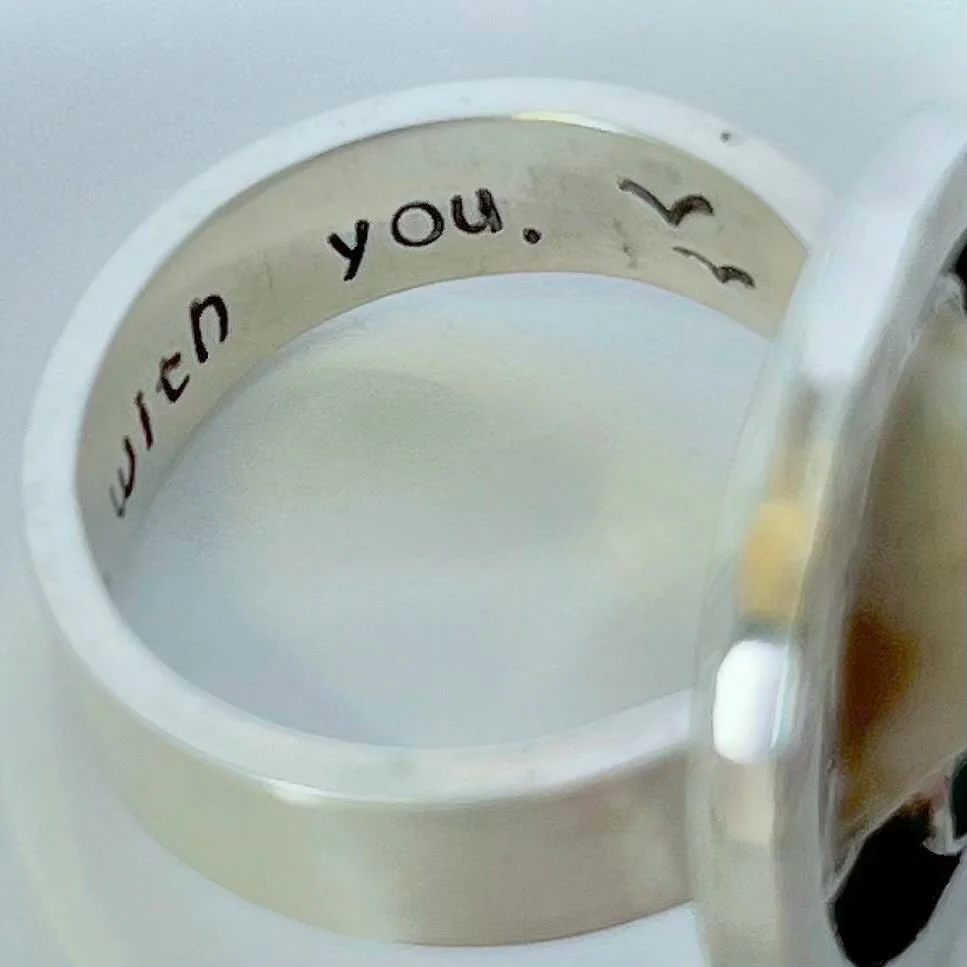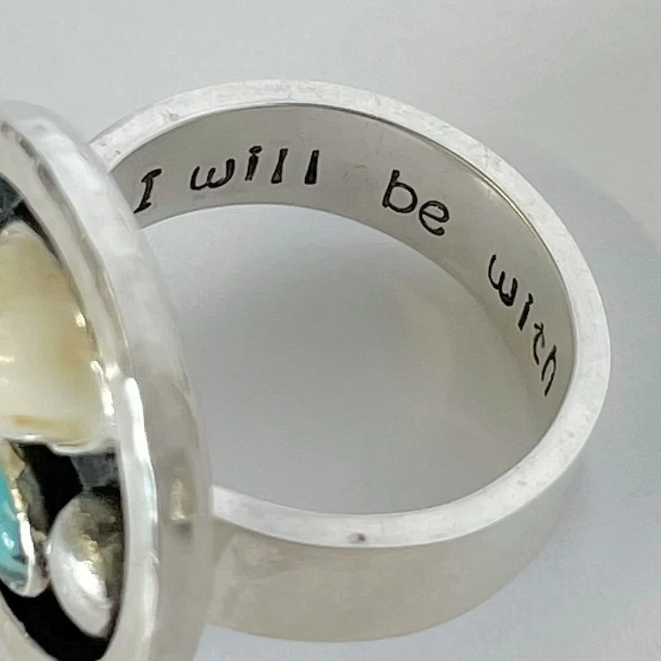 Lettering inside is hand-stamped and reads, “I will be with you.”