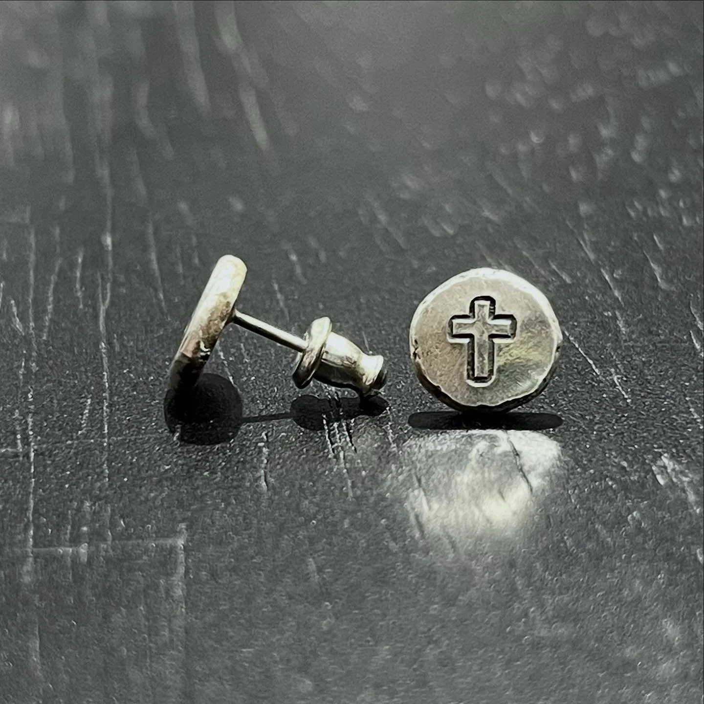 These hand-stamped earrings are made with recycled silver that is hammered flat in my shop.